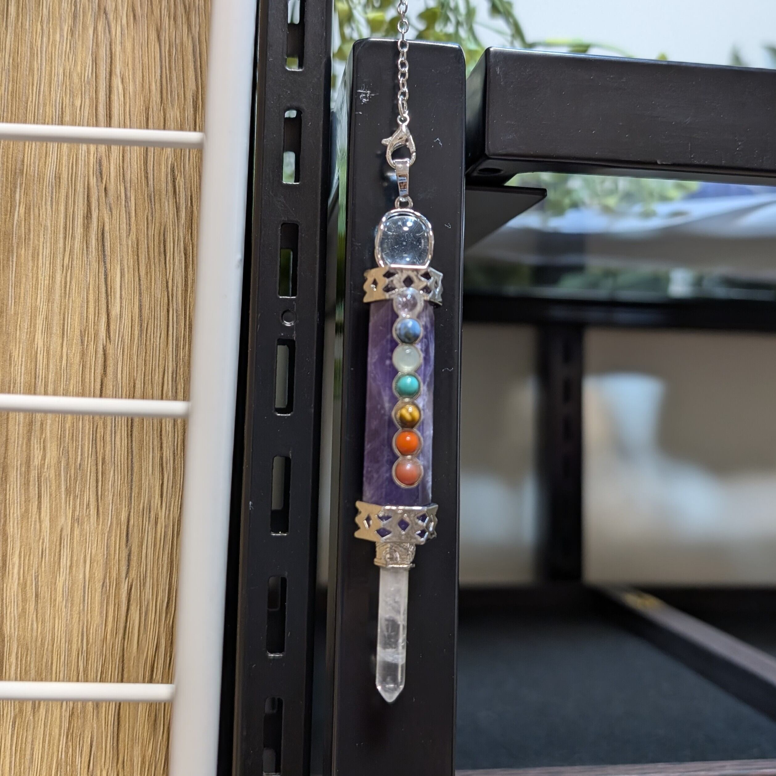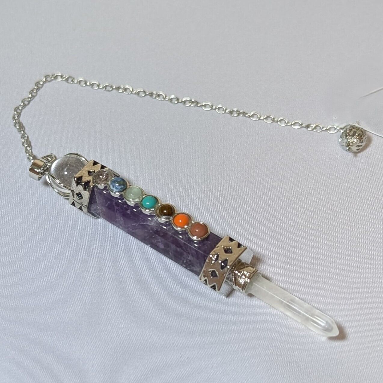 美しいアメジストを使用したペンデュラムで、ヒーリングエネルギーをしっかりと体感できます。エネルギーチャクラのバランスを整え、心と体の調和を促進します。自然の力を取り入れたこのペンデュラムは、癒しを求める方々に最適なアイテムです。
