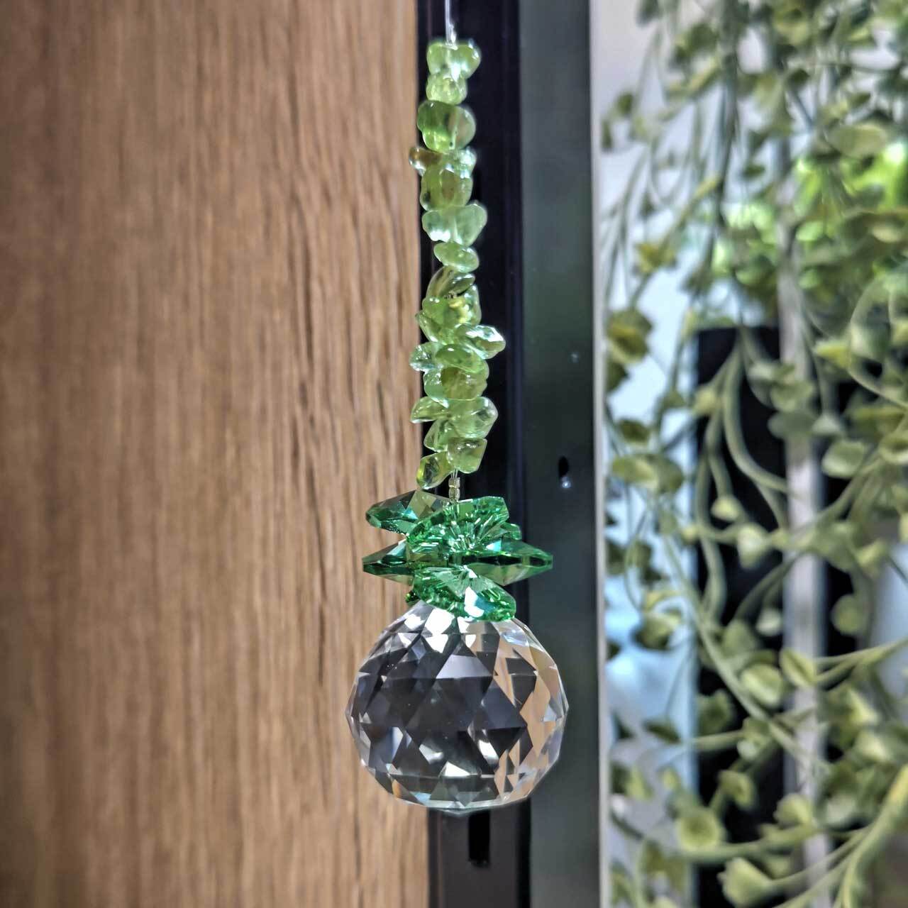 穏やかな緑色が心を和ませ、太陽の光を取り込むサンキャッチャーは、あなたの日常に幸せと活力を差し入れます。天然石の意味やパワーも感じながら、是非ご自身のパワースポットに加えてみてください。
