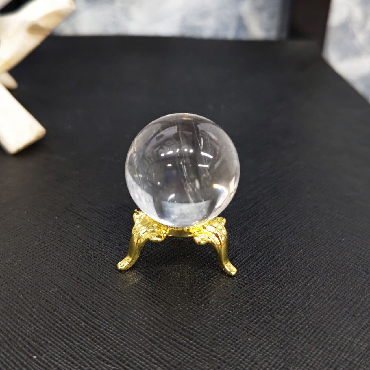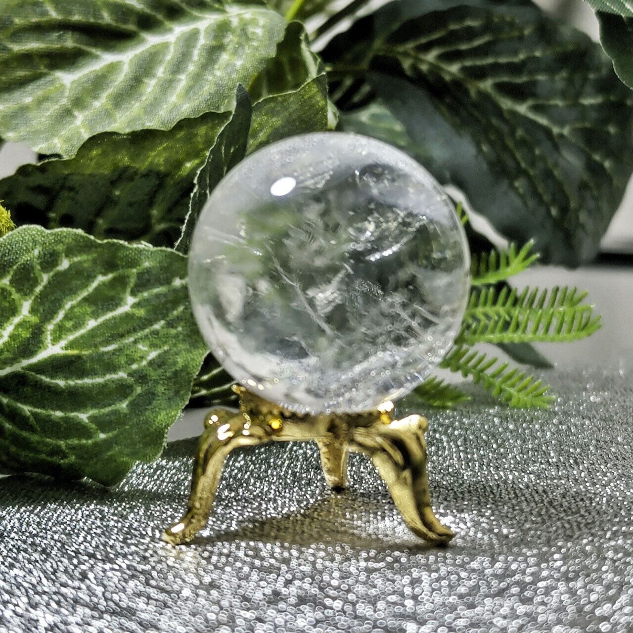 天然石 水晶 丸玉 約30mm 台座付