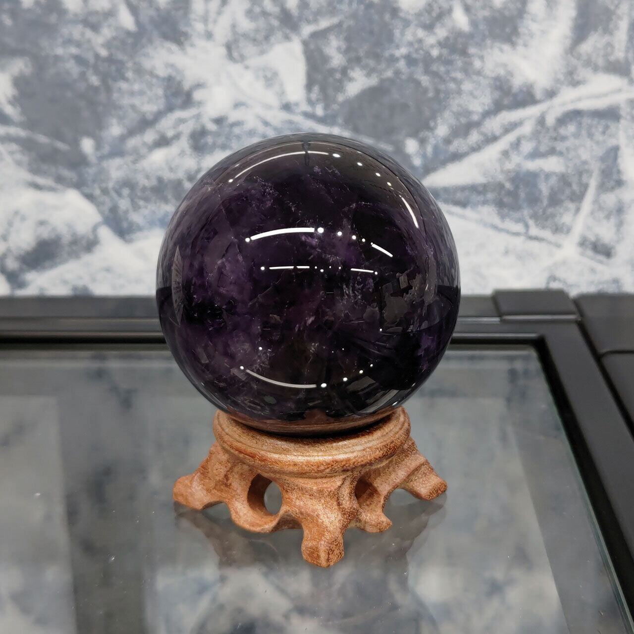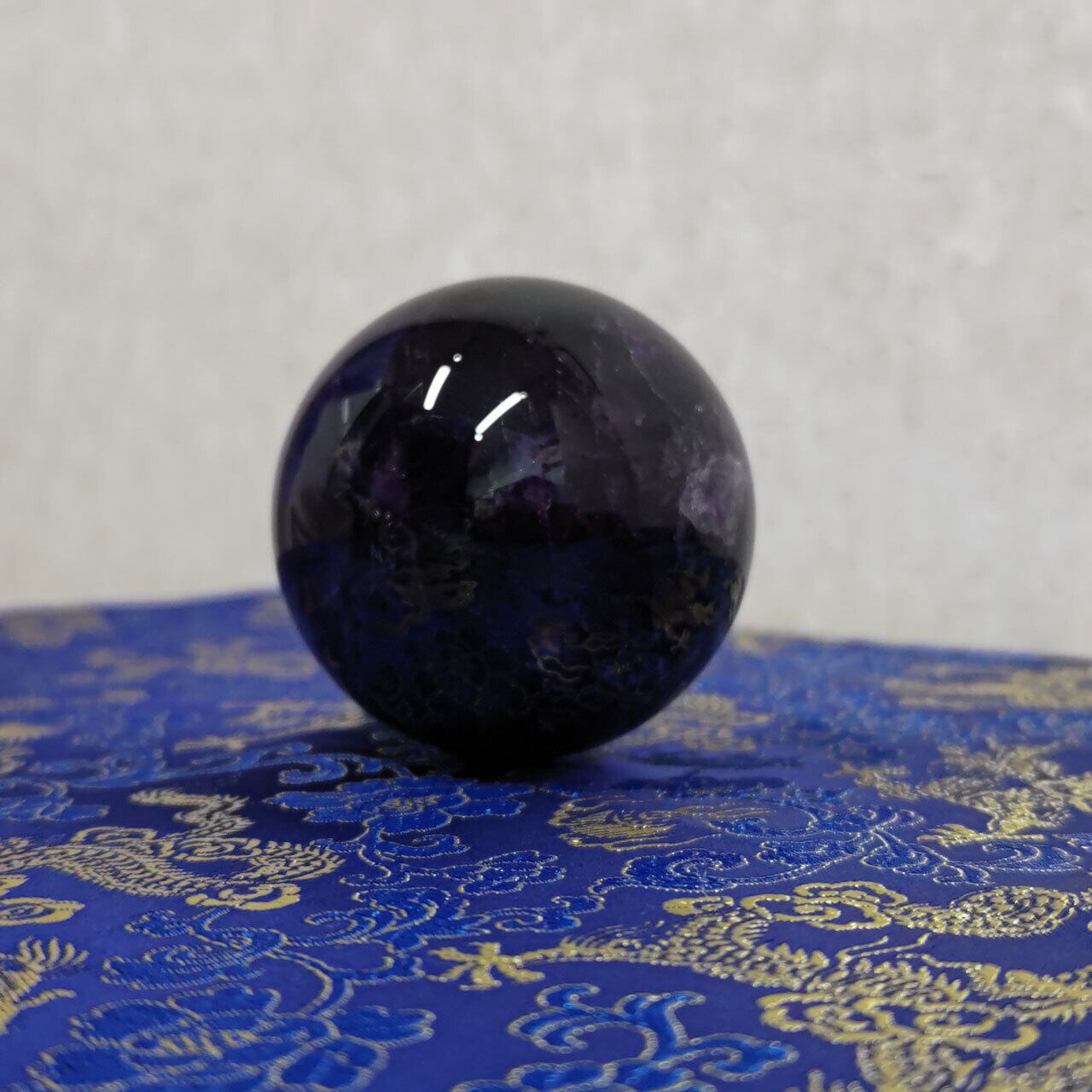 美しい紫色が特徴の天然石、アメジストの原石の丸玉です。