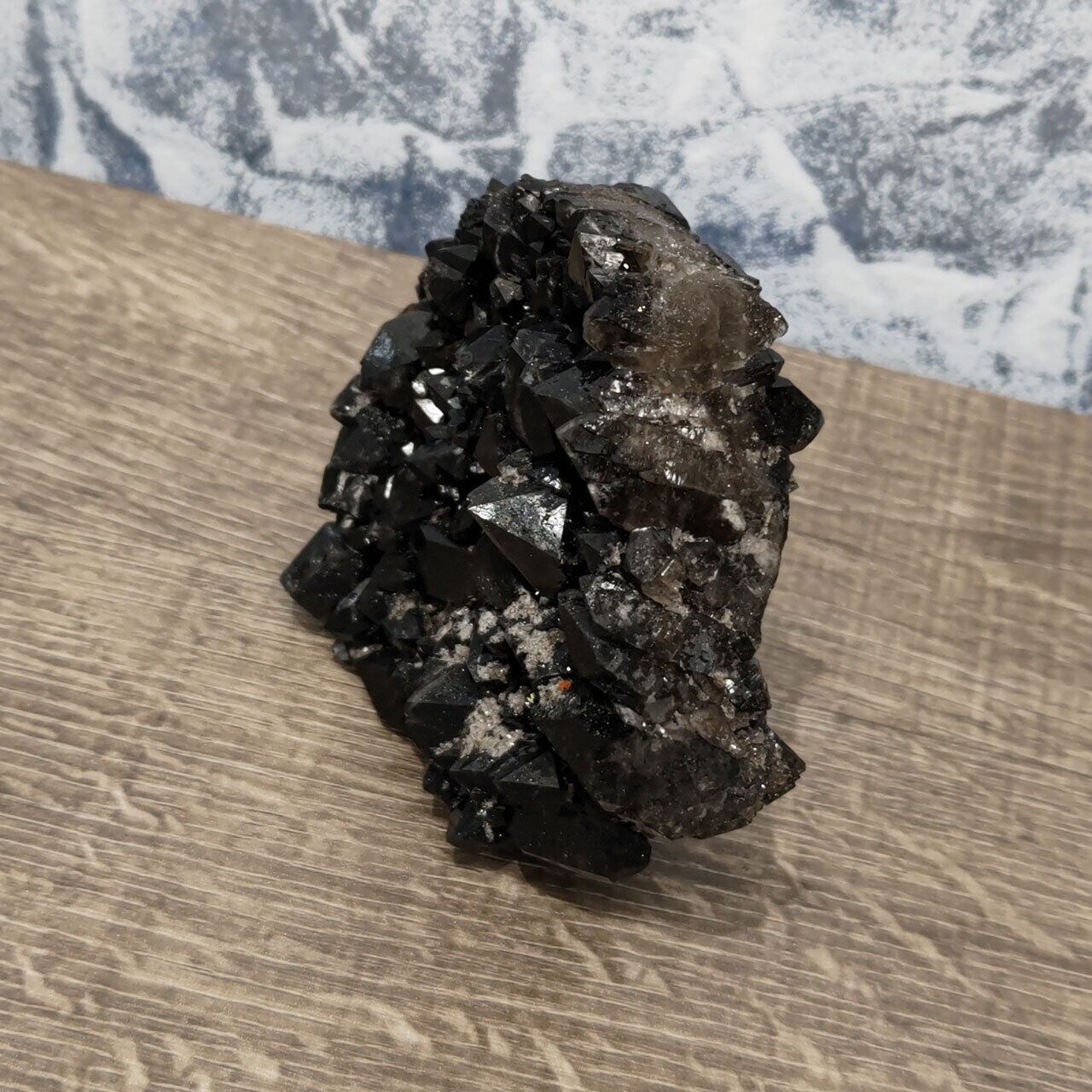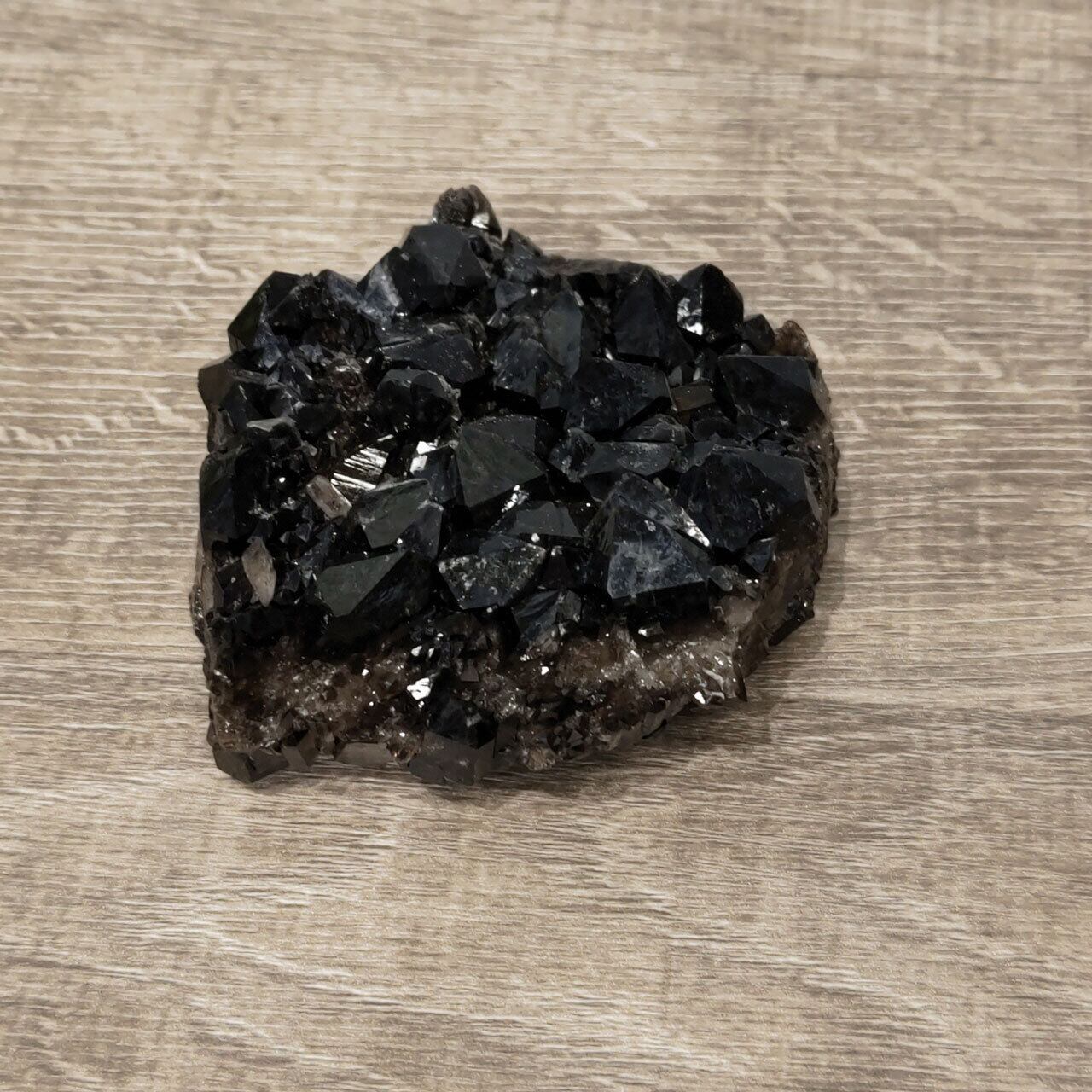 天然石のモリオン原石をご紹介します。アーカンソー産のこの原石は、重さ約214.2gで、黒っぽい色合いが特徴的です。天然石の美しさをそのままに、天然のままの姿をお楽しみいただけます。