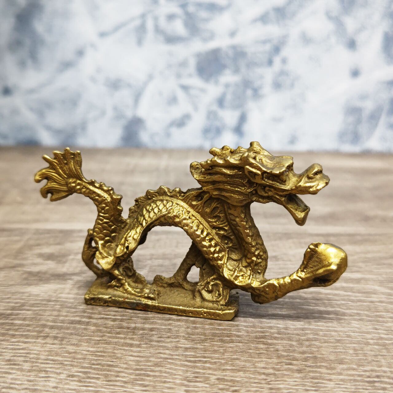 この龍の置物を選んだ理由は、その歴史と由来にあります。龍は古代中国の神話や伝説に登場する霊的な存在であり、まさに力強さと神秘性を象徴しています。職人たちは、その霊的なエネルギーを銅で表現することで、この置物が持つパワーを最大限に引き出しました。